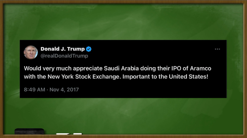 This tweet was the last tweet that Trump sent before the purge in Saudi Arabia. As it turns out, this tweet was actually a coded message giving the green light for the takedown in Saudi Arabia.