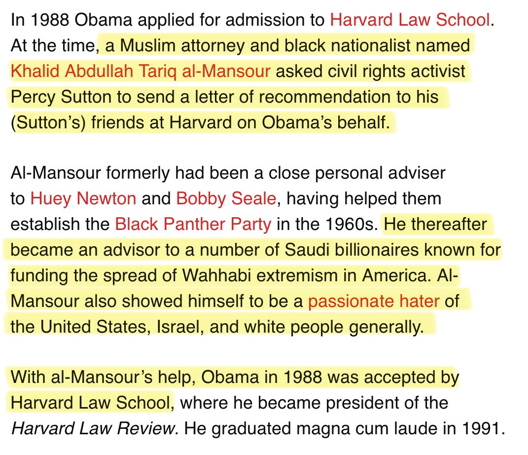 Dr. Khalid Abdullah Tariq al-Mansour wrote a letter to former Malcolm X lawyer Percy Sutton, imploring him to send a letter on Obama’s behalf to help him gain admission into Harvard Law School.