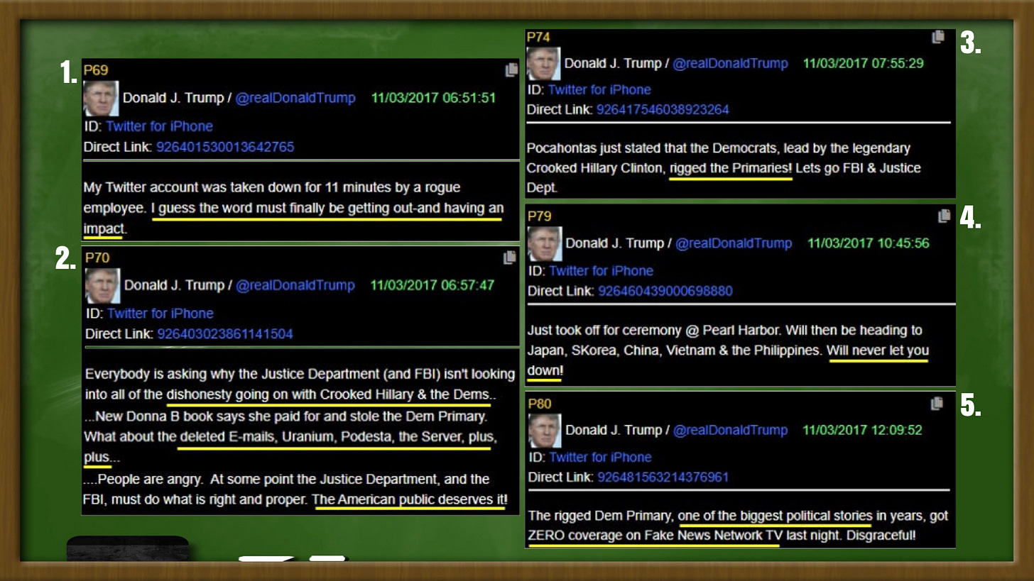 That said, you may recognize some of these topics, as they are the very same topics President Trump mentioned in one of the aforementioned tweets from Friday, November 3rd 2017.