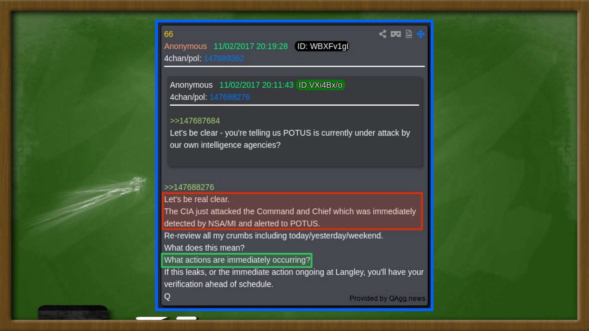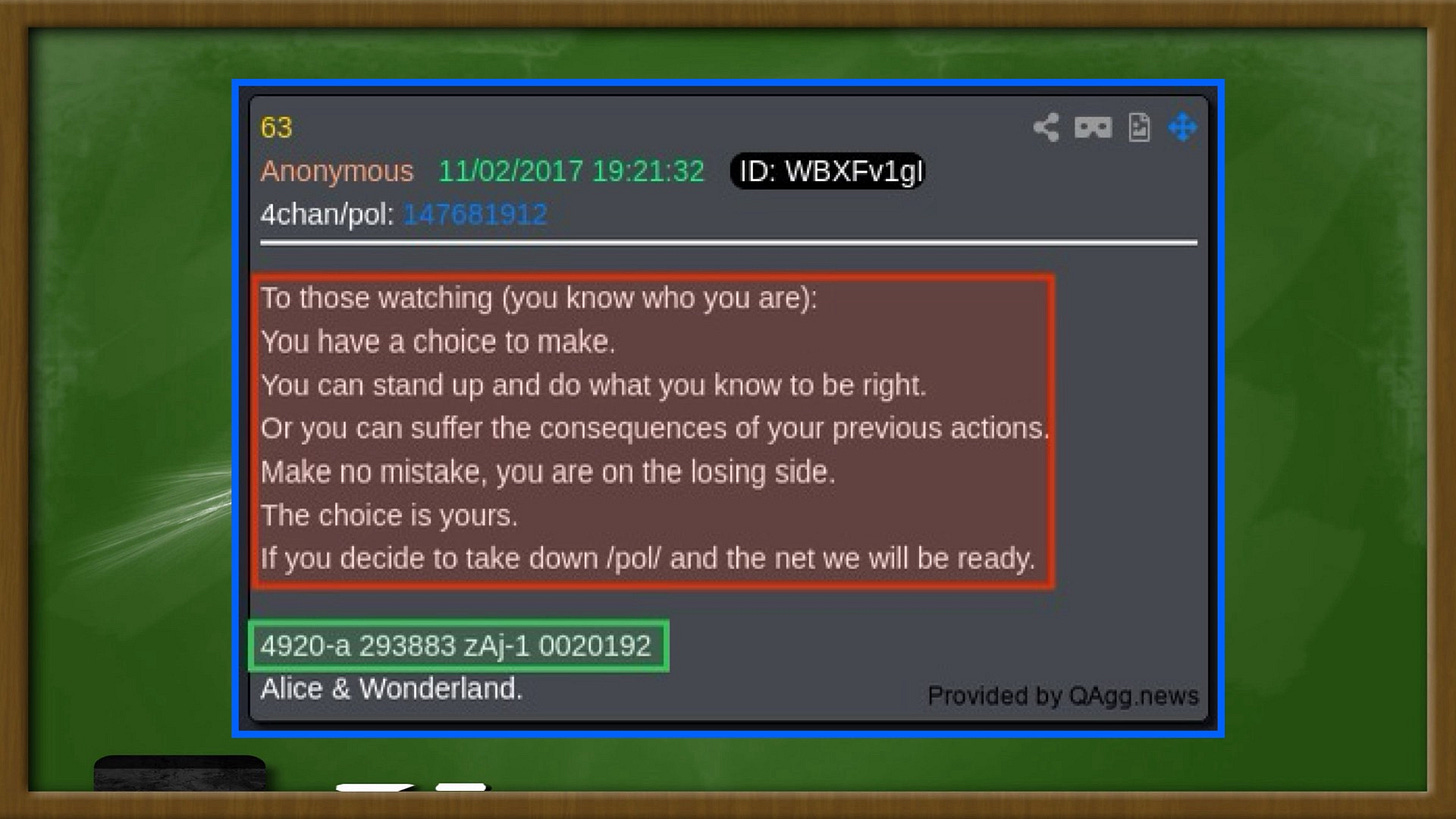 Q then goes on to tell them that they are most definitely on the losing side. At this point, [they] are told that if they take down /pol (4chan board) that the white hats are ready.