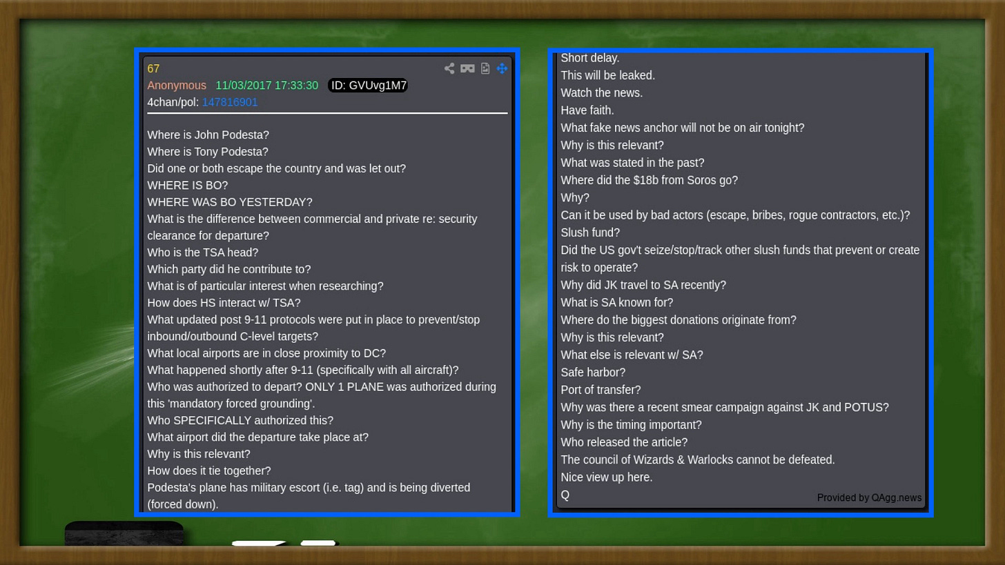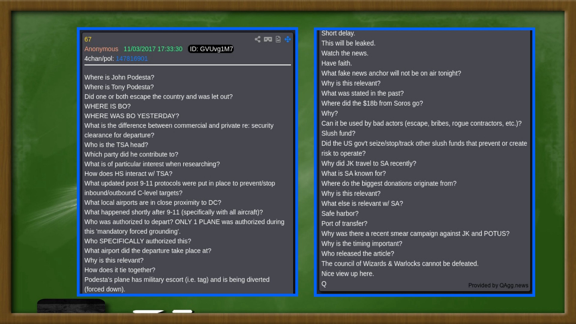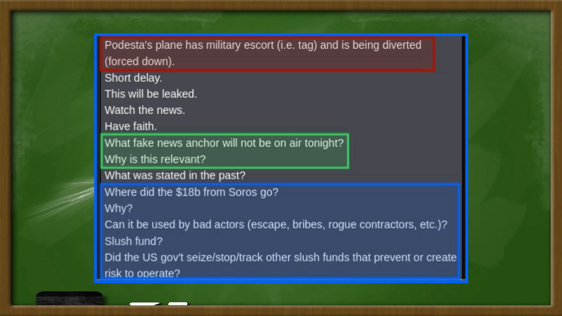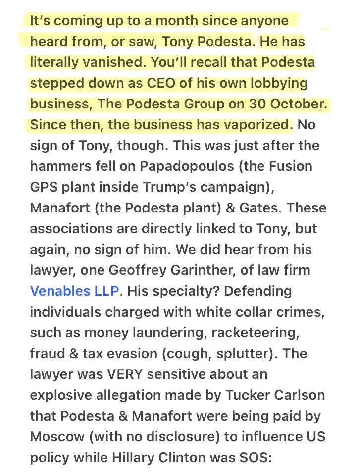 (Take note: The mention of Podesta’s attorney being notified was never sauced/confirmed as far as I can tell. That said, this does not mean it did not happen. Q said it for a reason, and as we can see - Podesta is currently back in the news.)