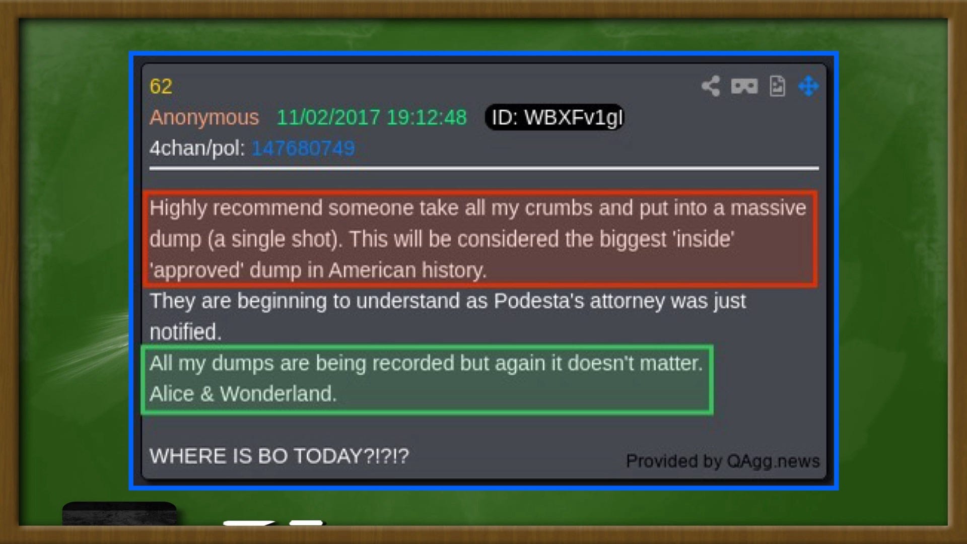 To begin this drop, Q asks anons to refer back to old crumbs and collect them. This statement will come back up in a few more drops, but the important takeaway here is that Q is making sure we pay attention and that we don’t take any information given for granted.