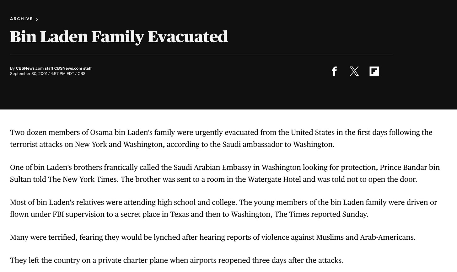 Days after 9-11, dozens of members of Bin Laden’s family were allowed to leave the United States. All of these flights had to have been approved from the highest level. So, for the cameras, Bush is decrying the evil Osama Bin Laden, meanwhile, he is helping to shuffle his family on out the backdoor.