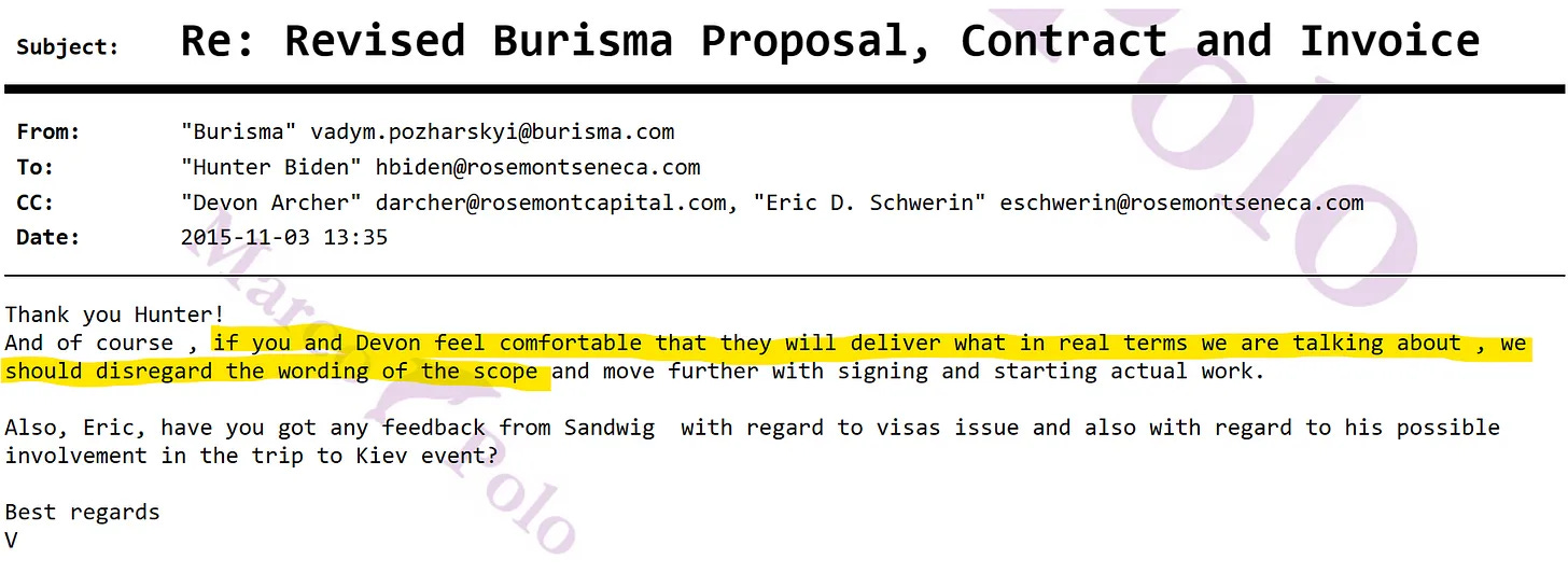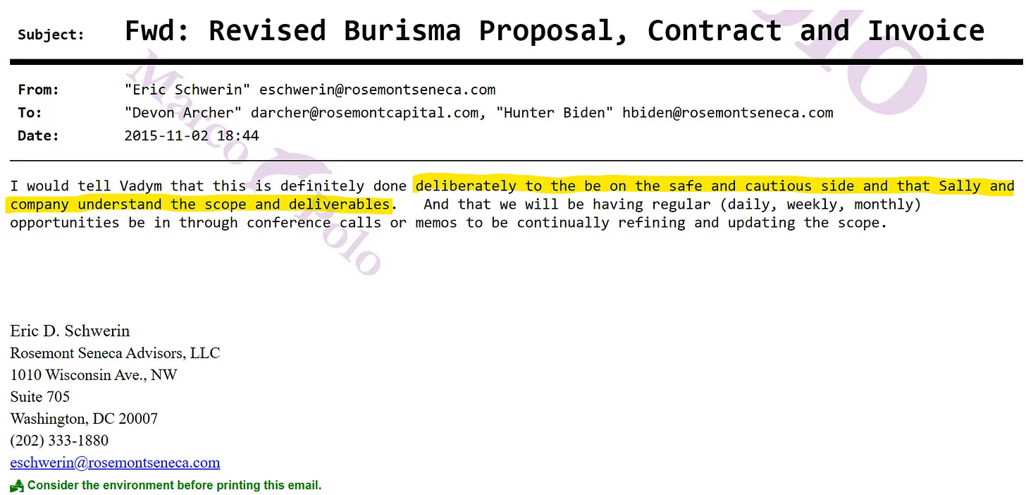 The next email was one sent from Eric Schwerin sent to Devon and Hunter. It would confirm that the name of top US officials Vadym was referring to were “definitely done deliberately to the be on the safe and cautious side and that Sally and company understand the scope and deliverables.”