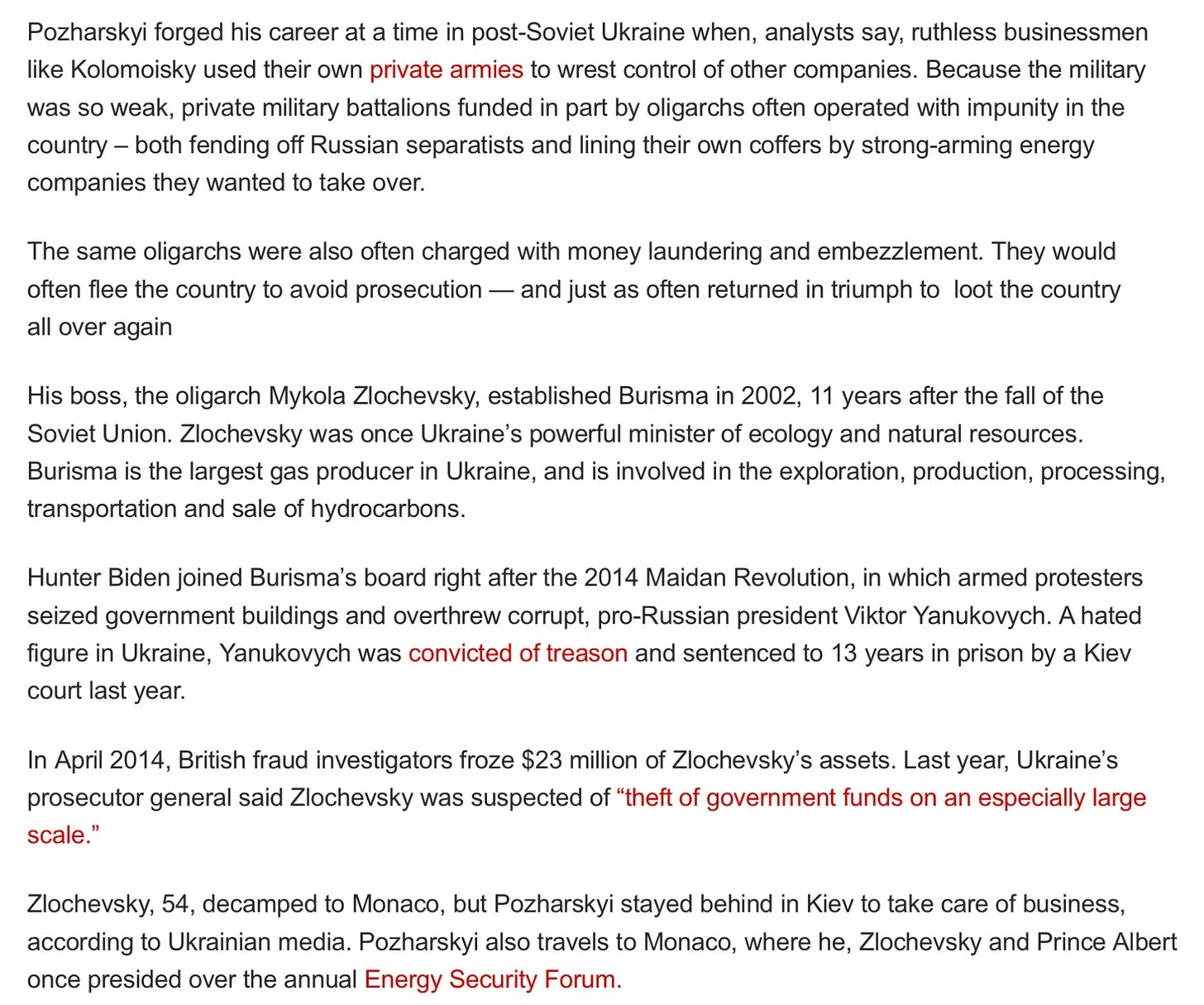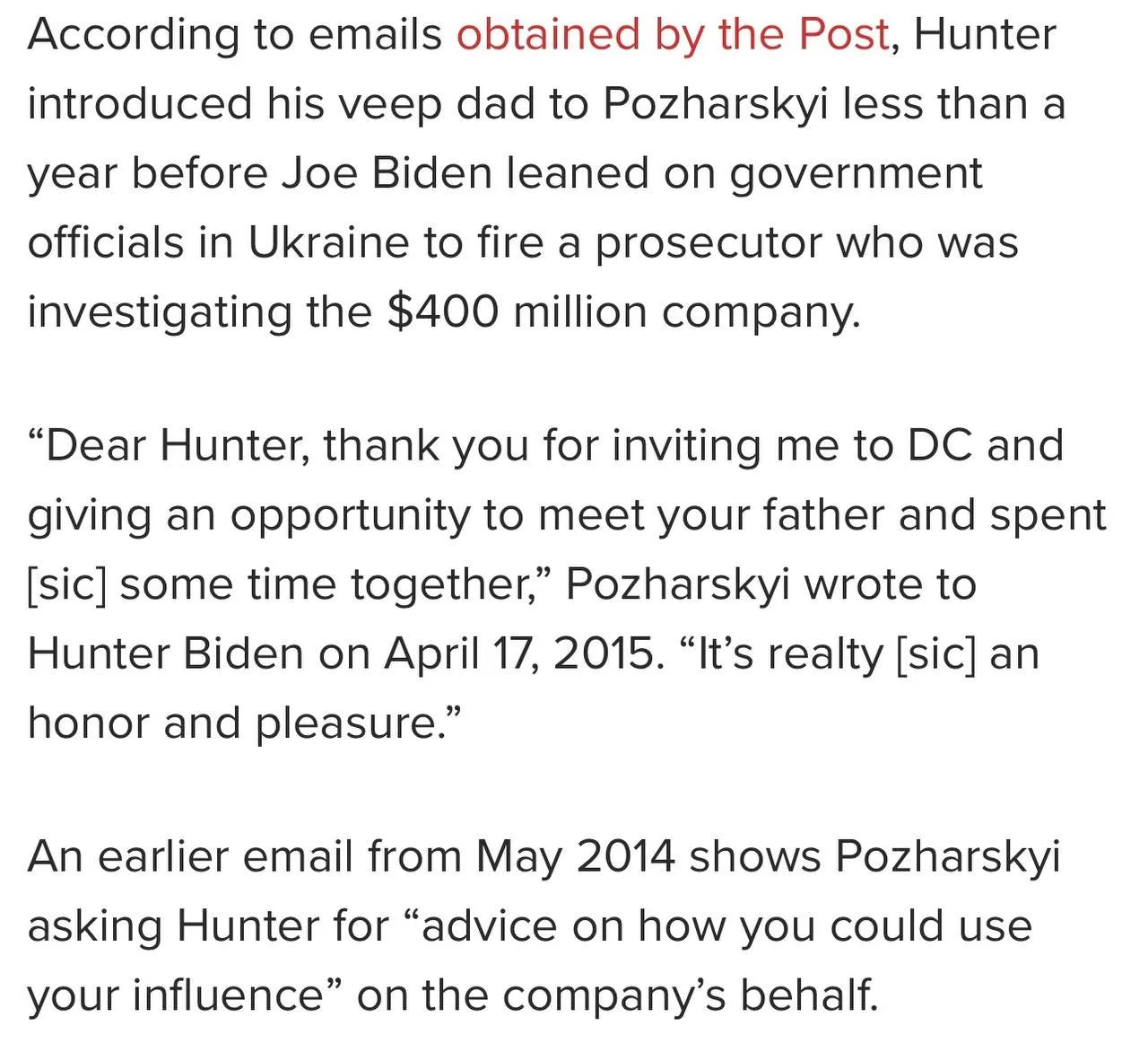 After Ukraine’s prosecutor general, Viktor Shokin, started to investigate Zlochevsky (sometimes referred to by Pozharskyi as ‘Nikolay’) for corruption, Pozharskyi appeared to begin leveraging Hunter’s position on the Board of Burisma.