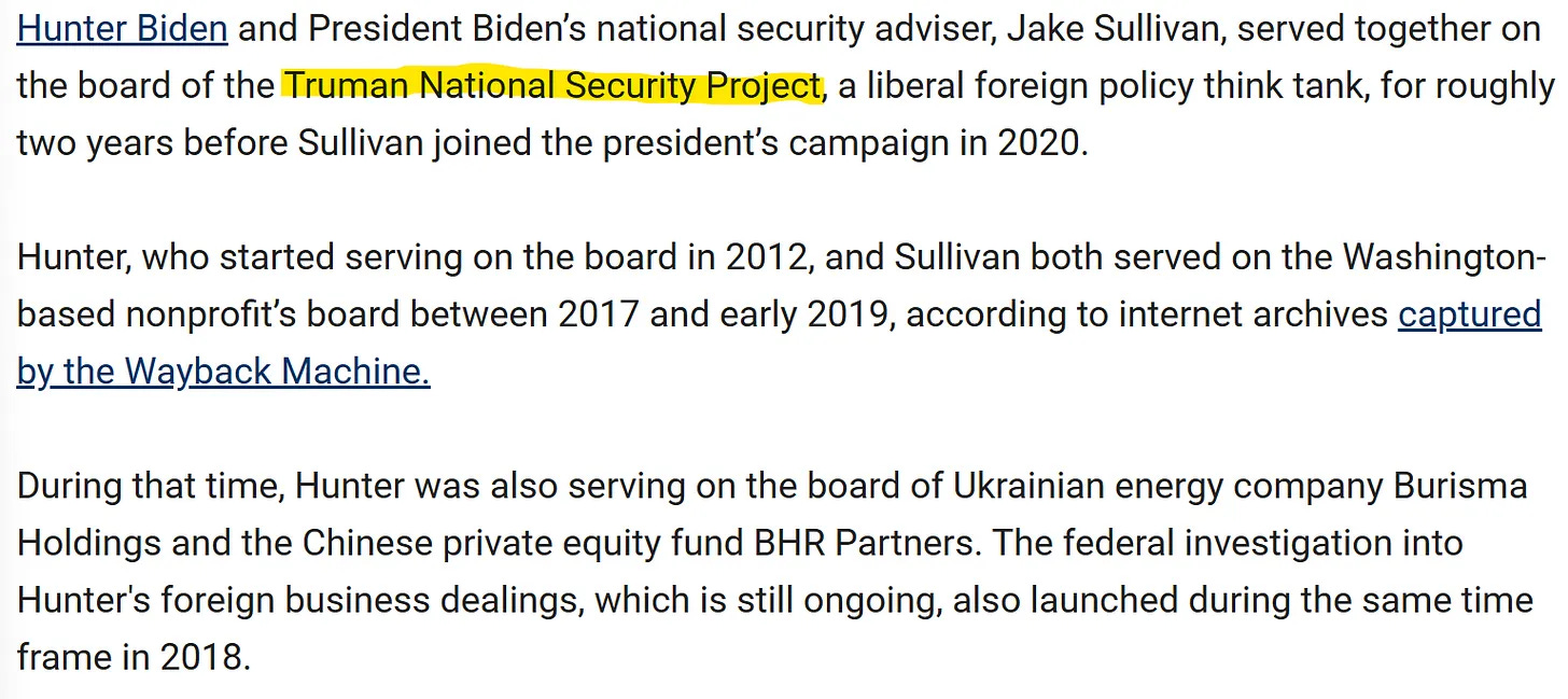 What this reporting overlooked was another individual who served on the board of the Truman National Security Project alongside Hunter and Jake. This other individual further entangles the current Biden administration with the alleged Biden family corruption, and should draw more scrutiny onto Hunter Biden’s role on the Board of Directors at Burisma while his father Joe, our current ‘President,’ was the “face of Barack Obama’s policy to Ukraine.”
