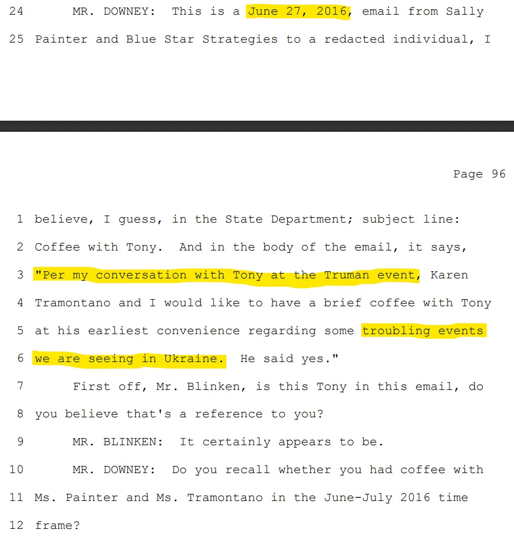 So a June 27th, 2016 email revealed that Sally spoke with Tony at a Truman event … The same Truman with Hunter, Sally, and Sullivan as board members. And Sally wanted to meet with Tony to discuss “troubling events we are seeing in Ukraine.”