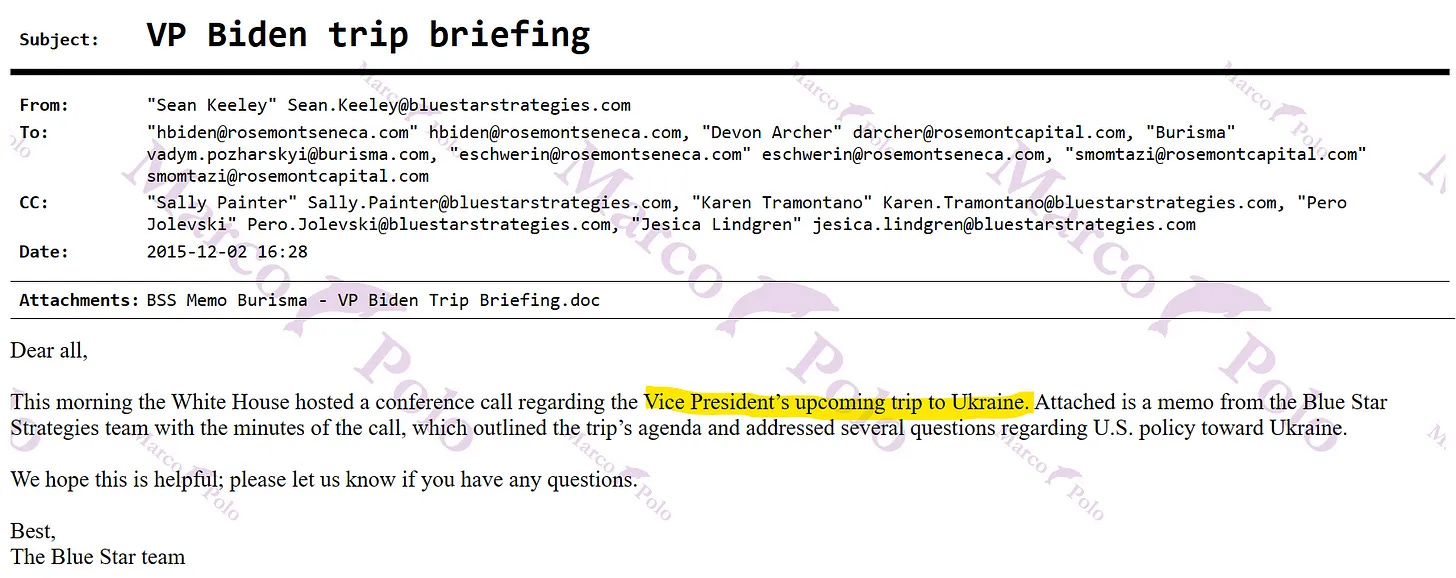 Within mere weeks of the contract signing, Blue Star Strategies was involved in a conference call with the White House regarding Joe’s upcoming trip to Ukraine.