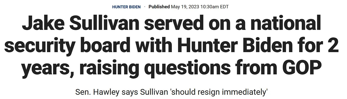 It was recently reported that Hunter Biden served on a national security advisory board with Jake Sullivan.