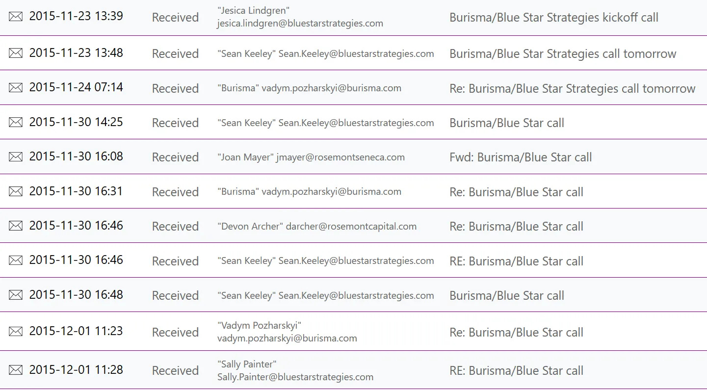 On 11/23/2015, a series of emails began to be exchanged regarding “Burisma/Blue Star” strategies and calls.