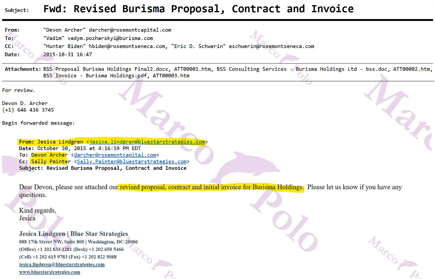 The first email in this thread revealed that Blue Star Strategies was providing a “revised proposal, contract and initial invoice for Burisma Holdings.”
