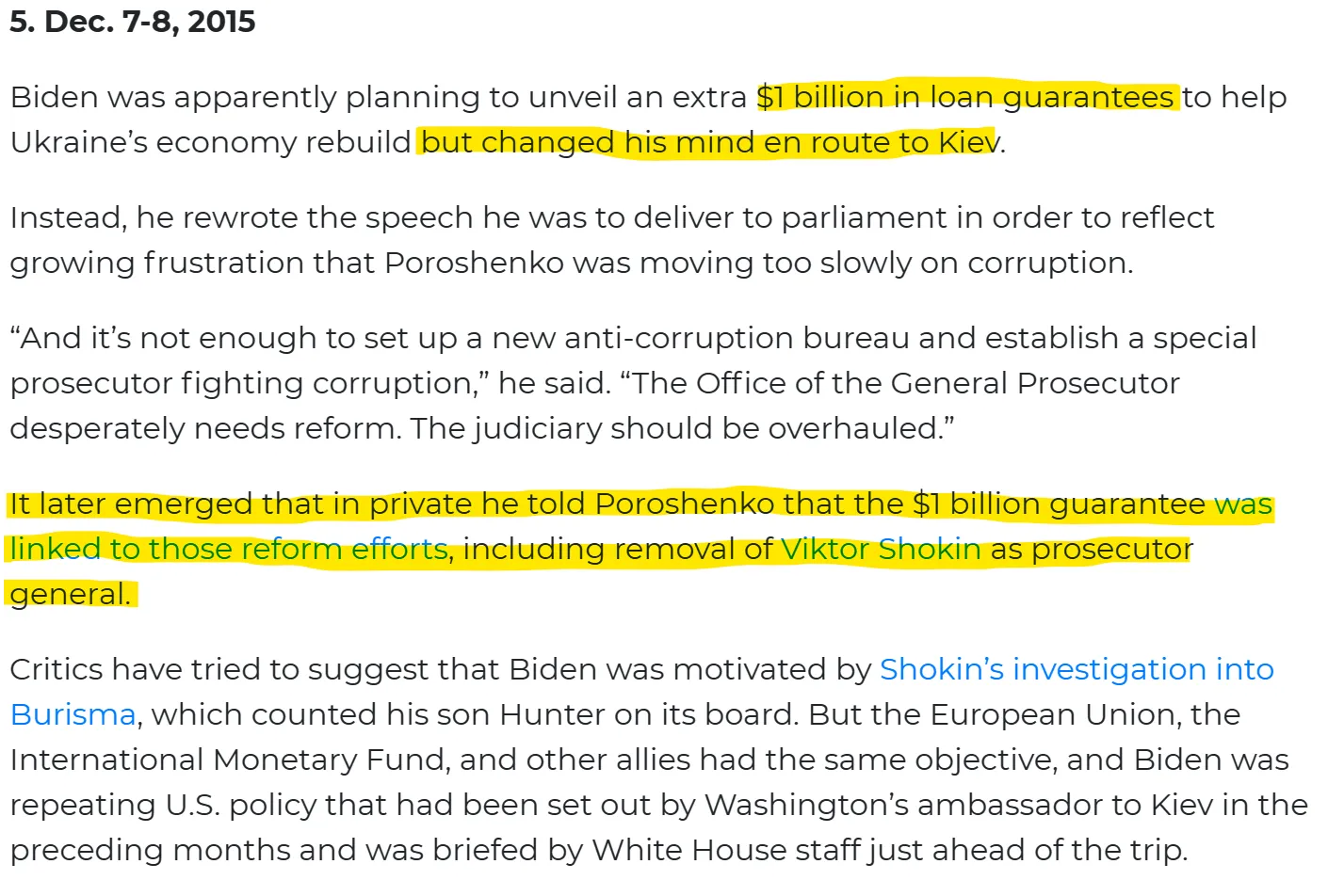 Joe Biden would later publicly state that he withheld $1 billion in loan guarantees unless Viktor Shokin was removed as prosecutor.