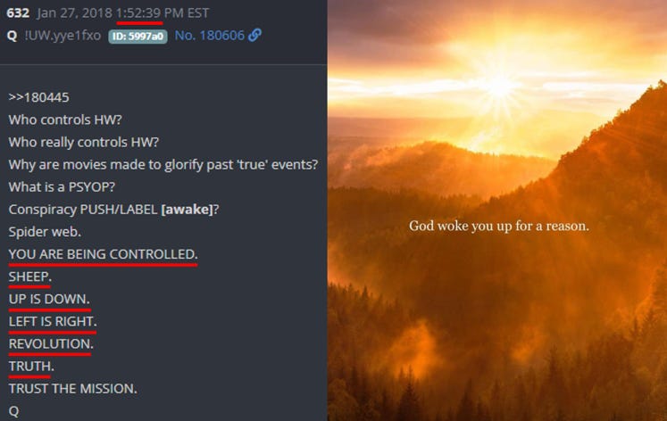 Q repeatedly emphasized not only the message of revolution, but Revolution.