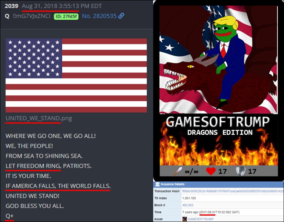 Now, re-consider Dan Scavino’s, “#BTC for the #Trump Train” Tweet, from March 21, 2016, seven months prior to the video above.