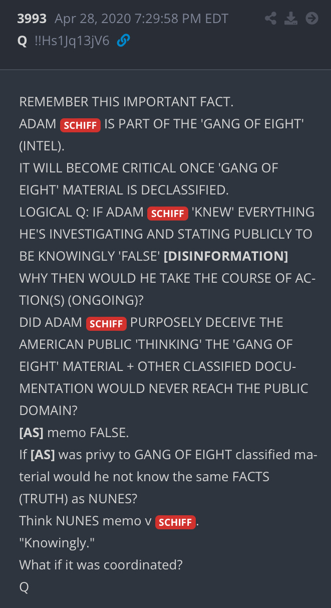 Congressman Adam Schiff, who was a ranking member on the Intelligence Committee, was constantly lying and “leaking” to the press. Do you think he doesn’t ALREADY know that there is a sealed indictment with his name on it?