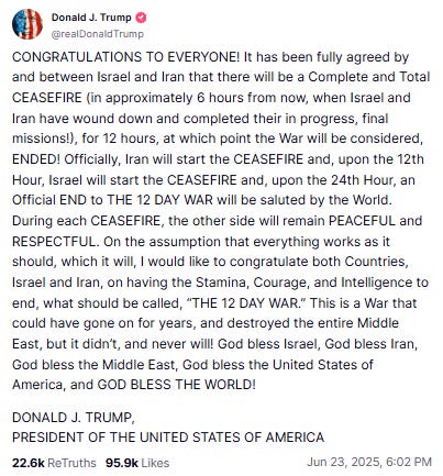 Not because war drums beat - but because the old war language was reinhabited with new meaning. Trump wasn’t declaring a campaign. He was pointing to a pattern. And for those with eyes to see, it wasn’t about Iran at all. It was about everything.