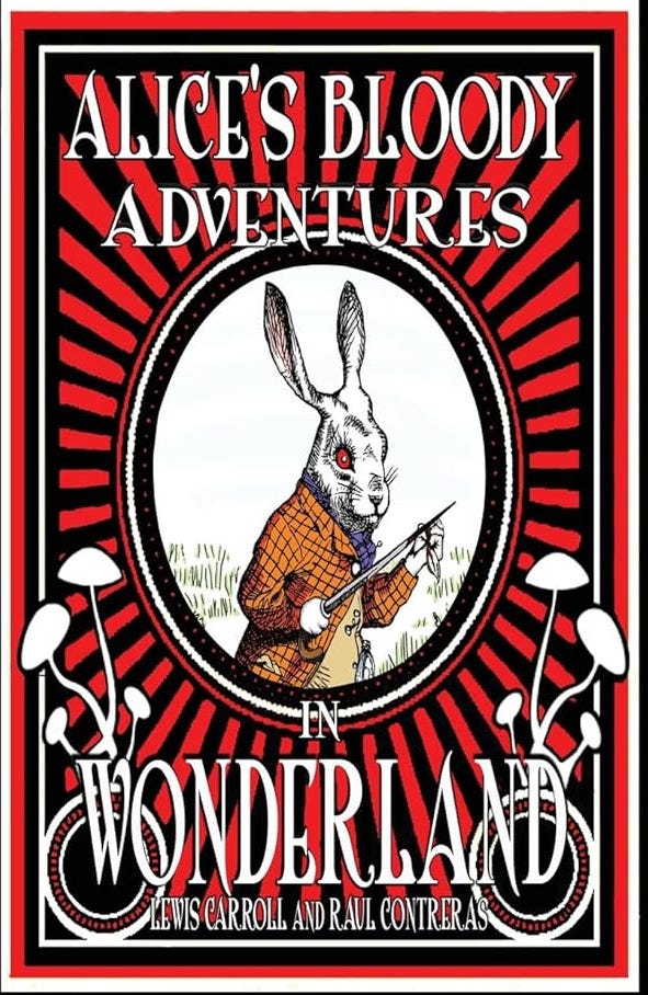 A new demented modern interpretation of Alice's Adventures in Wonderland. With illustrations by Los Angeles based street artist Tweedle Guns. The White Rabbit has killed Alice's Sister and cat. Sending her on a revenge quest down the rabbit hole. Alice finds herself a pawn in a deadly battle for supremacy of Wonderland.
