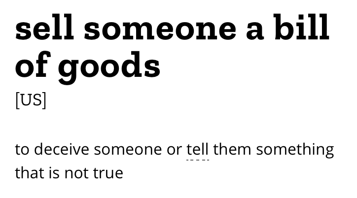 What does the term “sold a bill of goods mean”?