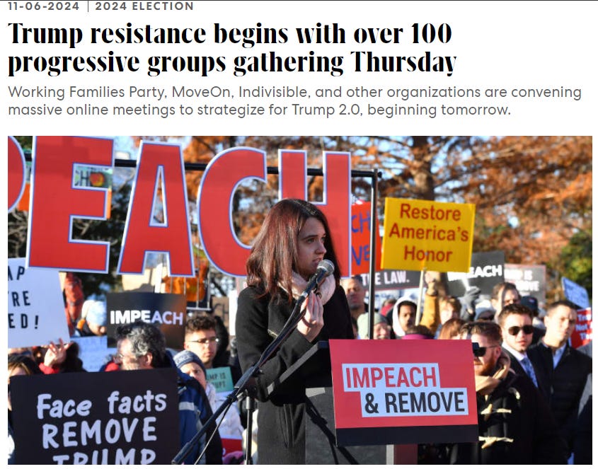 The Op Ed dovetails nicely with another, free article over at Fast Company titled, “Trump resistance begins with over 100 progressive groups gathering Thursday”: