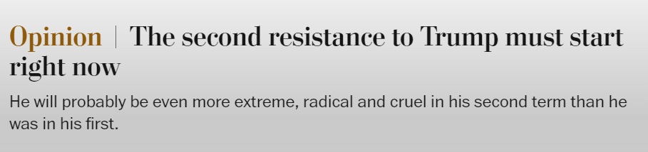 The WaPo opinion piece shown above sits behind a paywall; I would never do something so counterproductive as suggest that you donate your hard-earned dollars to a propaganda rag, but being a journalist who tries to stay abreast of the whole spectrum of political discourse, I’ve read the piece so that you don’t have to.