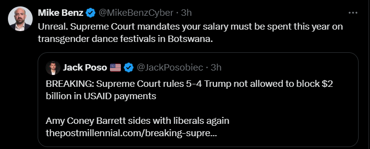 The Supreme Court decision actually makes sense to me. It is allowing the corrupt game to continue so the fraudsters are led to believe they can continue stealing from us. But, DOGE keeps rolling along. It is too early for this evil corruption to be shut down. Good grief! It has been growing exponentially behind the scenes for over 60 damned years. We need to expose it entirely in order to kill it dead.