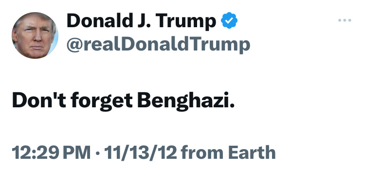 Trump knew how important Benghazi was back then. Do you think that he’s forgotten about Benghazi? We won’t forget.