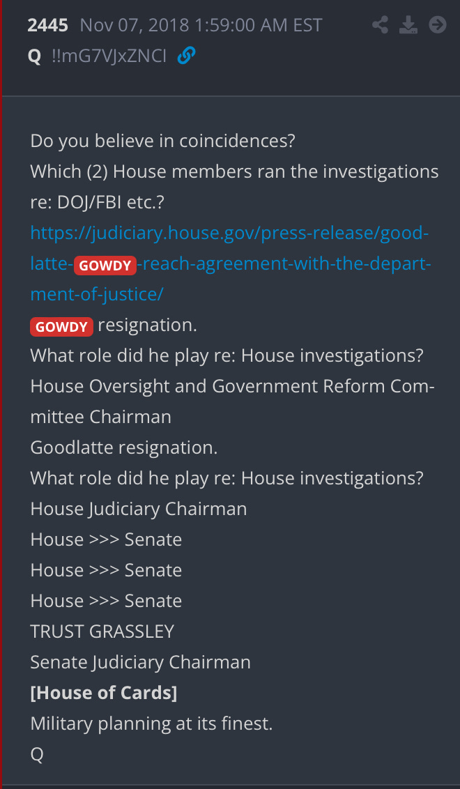 This is a military operation, and Gowdy, Goodlatte and Sessions are playing KEY roles in the background. They were all directly tied to General Flynn’s protege and righthand man.