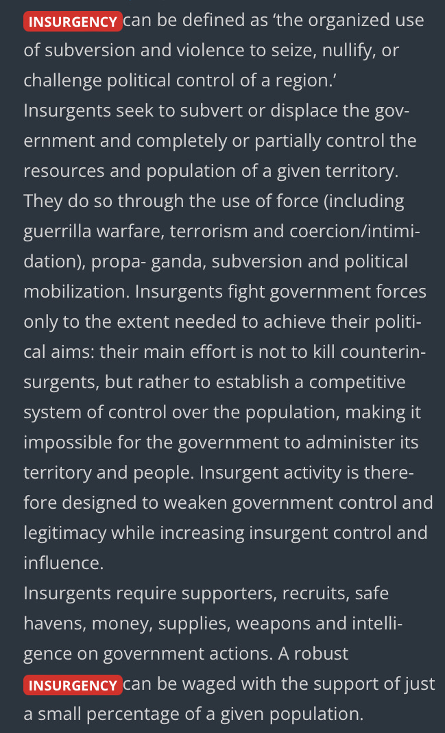 (All definitions and excerpts courtesy of the Counterinsurgency Guide.)